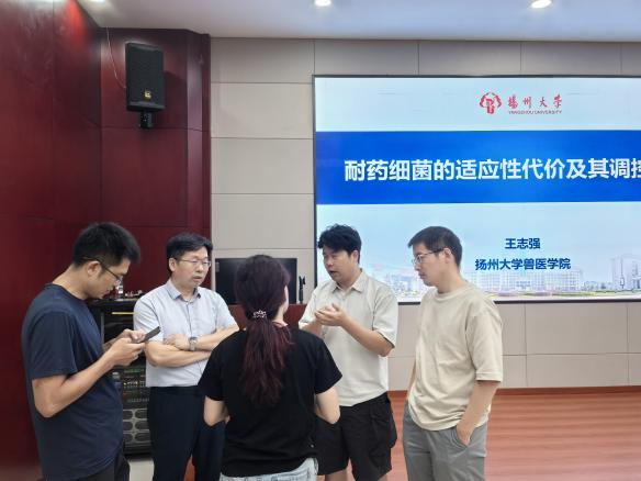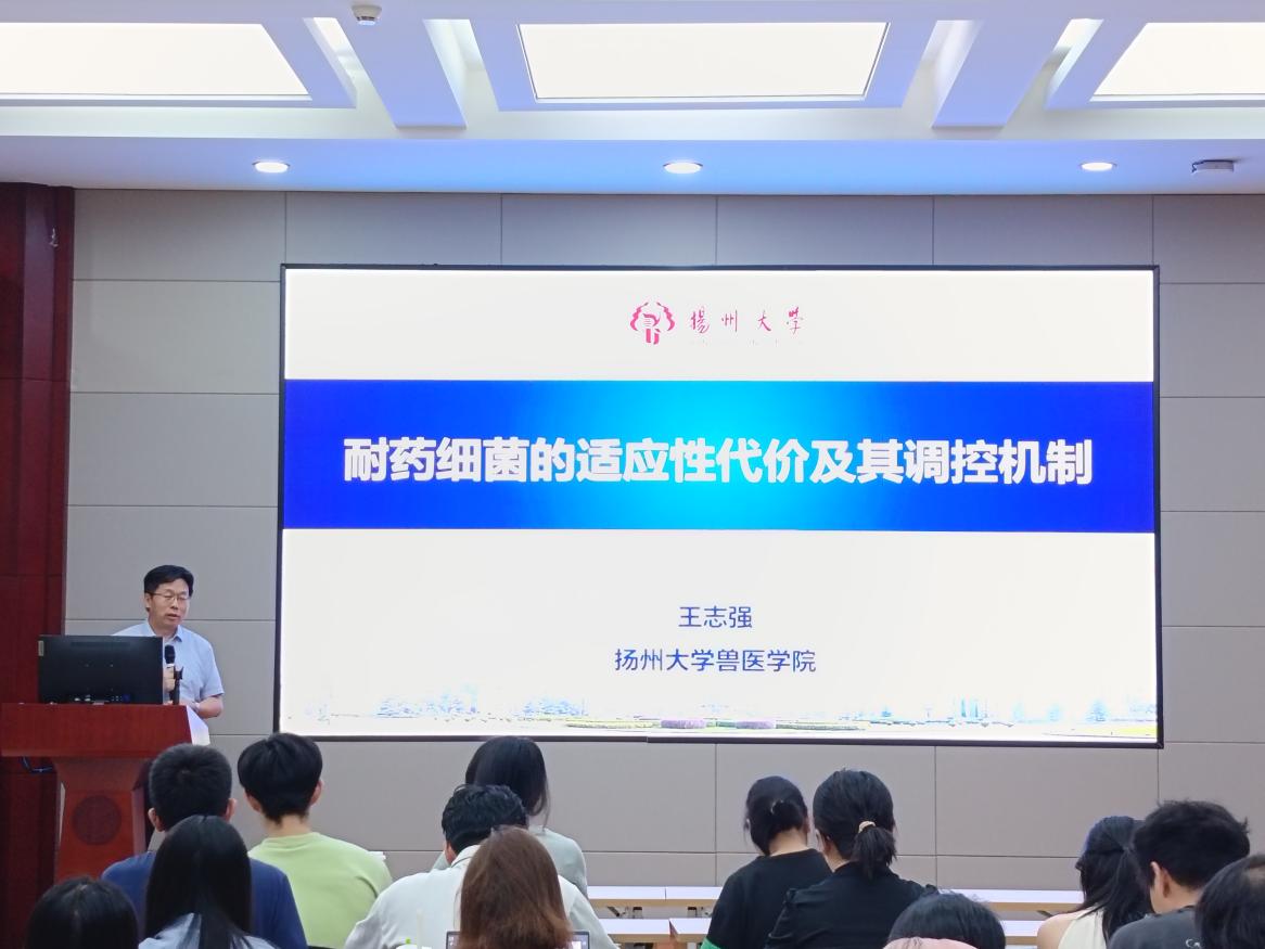 动物医学中心彭大鹏教授主持学术报告会议,王志强教授以“耐药细菌的适应性代价及其调控机制”为题作学术报告。王志强教授从耐药细菌的现状及其适应性概念入题,介绍了耐药细菌导致的兽医公共卫生问题现状,以及耐药细菌适应性代价概念的提出和意义;进而以丰富的本实验室研究案例,从质粒、基因、和细菌等三个水平揭示了耐药细菌的适应性代价调控机制;随后从抗菌新靶点挖掘、新型抗菌活性分子发现、耐药传播抑制剂筛选、新型抗菌增效剂筛选、以及抗耐药菌新策略等方面全面介绍了团队在耐药菌防控方面所做的系列工作。王志强教授的报告深入浅出、内容丰富,精彩纷呈。会后,师生踊跃提问,与王志强教授展开热烈的学术讨论,报告会取得圆满成功。
