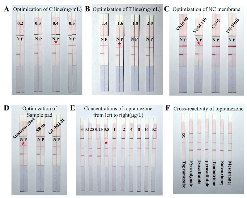 图4. 胶体金试纸条优化与特异性检测