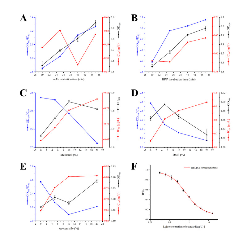 图3. Ic-ELISA方法优化与标准曲线